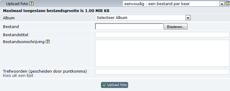 Other alternative upload mechanisms (like Client-based agents as JUpload or similar) may be provided as third-party contributions - you're encouraged to look at them as well, but please keep in mind that the coppermine developers can only provide limited support for third-party contributions.