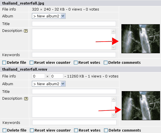 Using the above screenshot of a video file as an example, the thumbnails for this file could be 'thumb_thailand_waterfall.gif', 'thumb_thailand_waterfall.png', or 'thumb_thailand_waterfall.jpg', and searched for by cpg in that order.